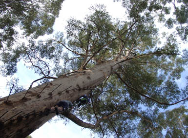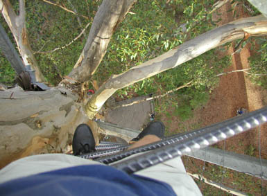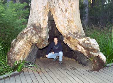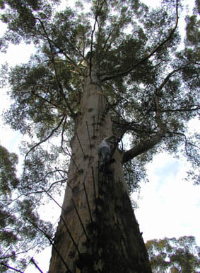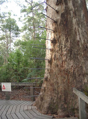 To look out for fires in the forests, platforms were installed on some high Karri trees. One of these so called "Lookout Trees" is the Gloucester Tree near Pemberton. It is 61 m high. Andreas and I climbed up the tree. I think it was the greatest adventure on our hole trip.