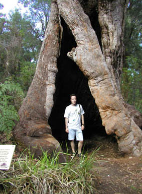 ![]() | That's the Giant Tingle Tree. It's incredible that the tree is still standing with that big gap in the middle! |